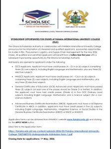 According to details contained in the official announcement , all successful applicants under this scheme will benefit from a tuition-free first year, with the possibility of continued sponsorship support from the Ghana Scholarships Authority in subsequent years.